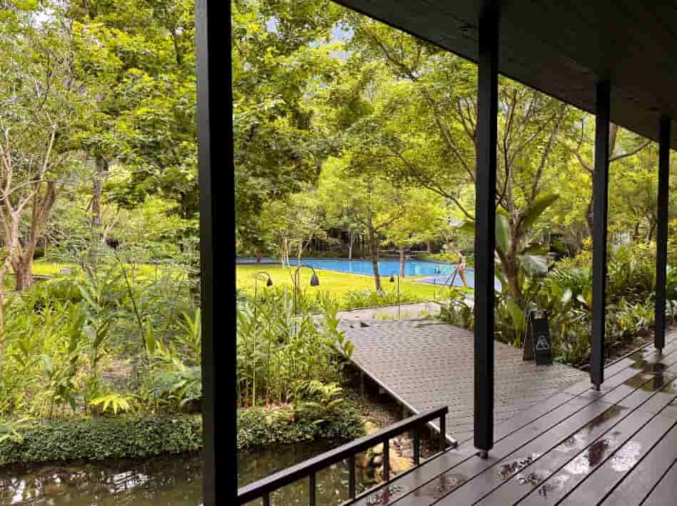享受完溫泉泡湯,炎炎夏日怎麼能沒有涼爽的戲水區🏊呢!夏天就是要搭配玩水才過癮啊💦~向大廳往水之庭園方向走去就能看到池畔旁整排的涼亭⛱️,水池分為較淺的戲水區及較深的游泳區,兩個願望一次滿足!