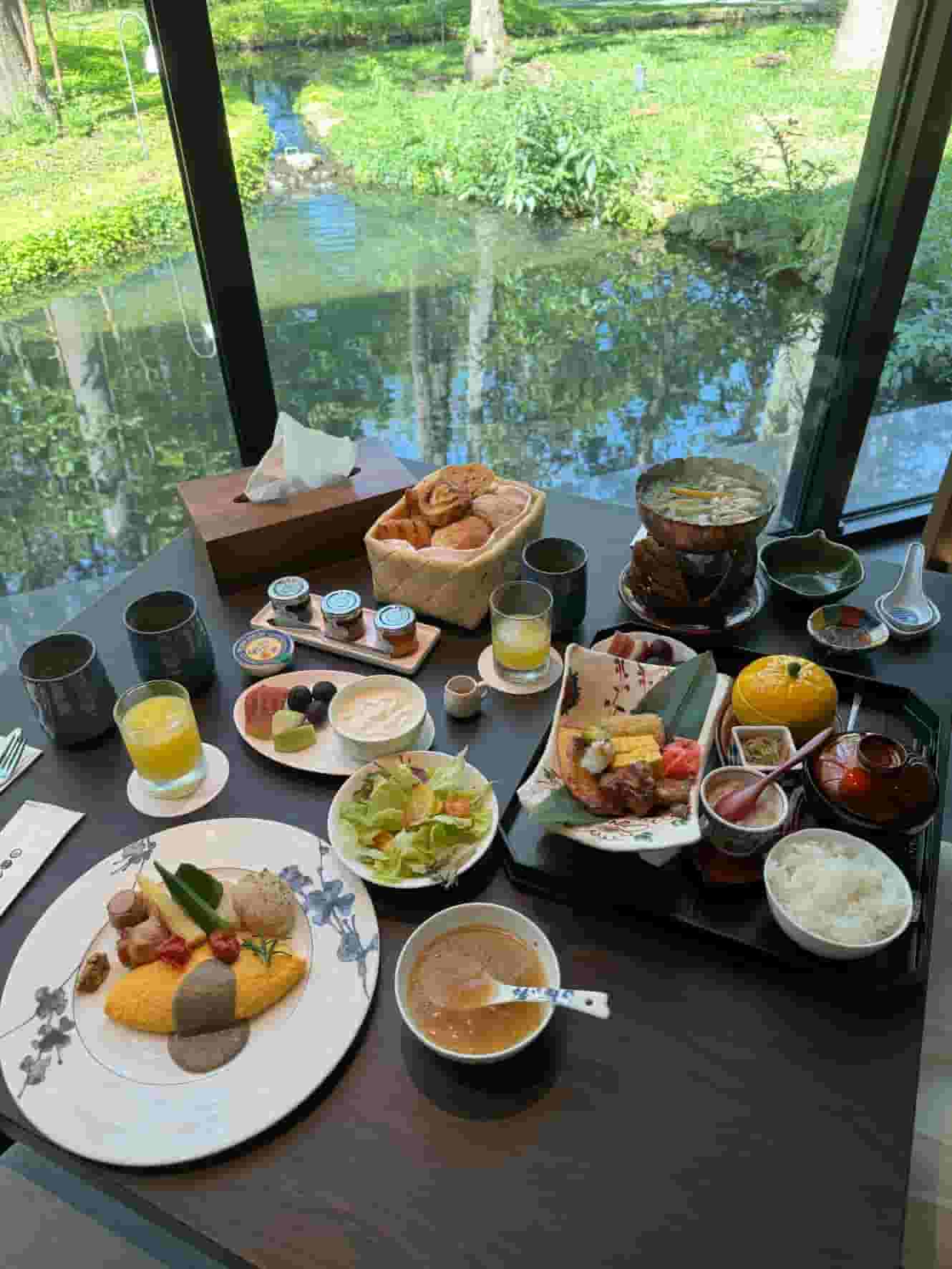 「浴後休息區」位於大眾池旁,窗外望去就是水之庭院✨庭園中,茂密的樹林和靜謐的水塘交相輝映,搭配午後的飲品及小點,觀賞水塘中盛開的睡蓮,享受愜意的休憩時刻😍!