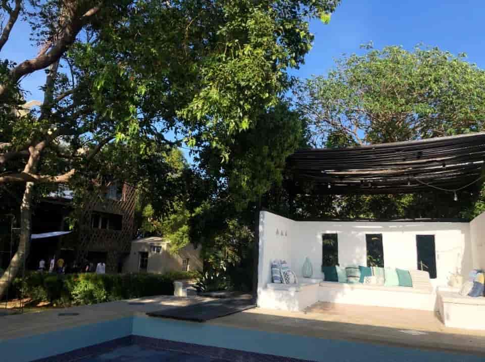 ☀️ 民宿大門口種滿植被搭配豔陽藍天,彷彿進入奇幻森林