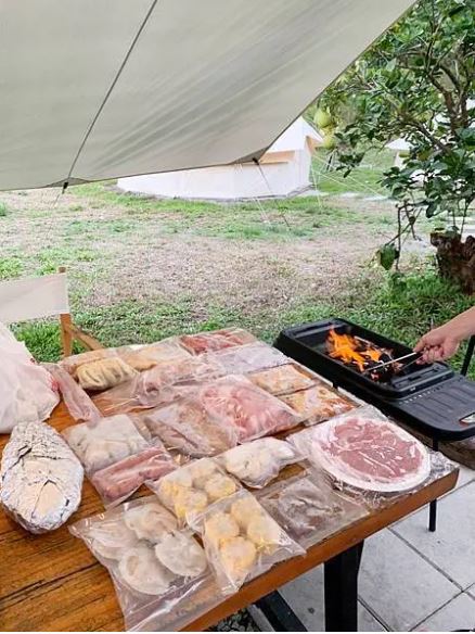👉代訂的烤肉食材種類豐富新鮮,傍晚準備生火來烤肉