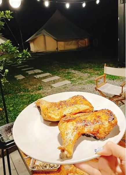 田野森農場有提供烤肉食材代訂服務,露營搭配晚餐烤肉很過癮,獨立廚房除了有流理台跟冰箱,不用像其他露營場要到公共空間跟其他人共用,還有提供基本廚具跟卡式爐,天氣冷的時候還可以自備食材煮火鍋。