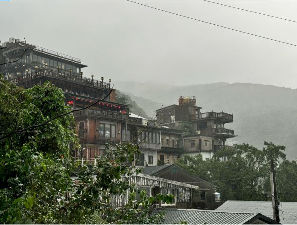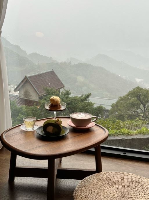 吃完中餐後沿著北海岸一路享受沿途風景,前往雲霧繚繞浪漫的九份山城。午後的九份開始起霧,我們直接衝上山來到這間藏在山城裡的【Hima café 暇 • 咖啡】整面落地窗將山海美景一覽無遺,靜靜凝望那多變天氣下的神祕山巒,遠方的海峽與重疊起伏的山勢相映成趣,雲霧時聚時散,彷彿一幅壯麗的山水畫,靜靜地在眼前鋪展,若隱若現反而更添浪漫神秘美感。